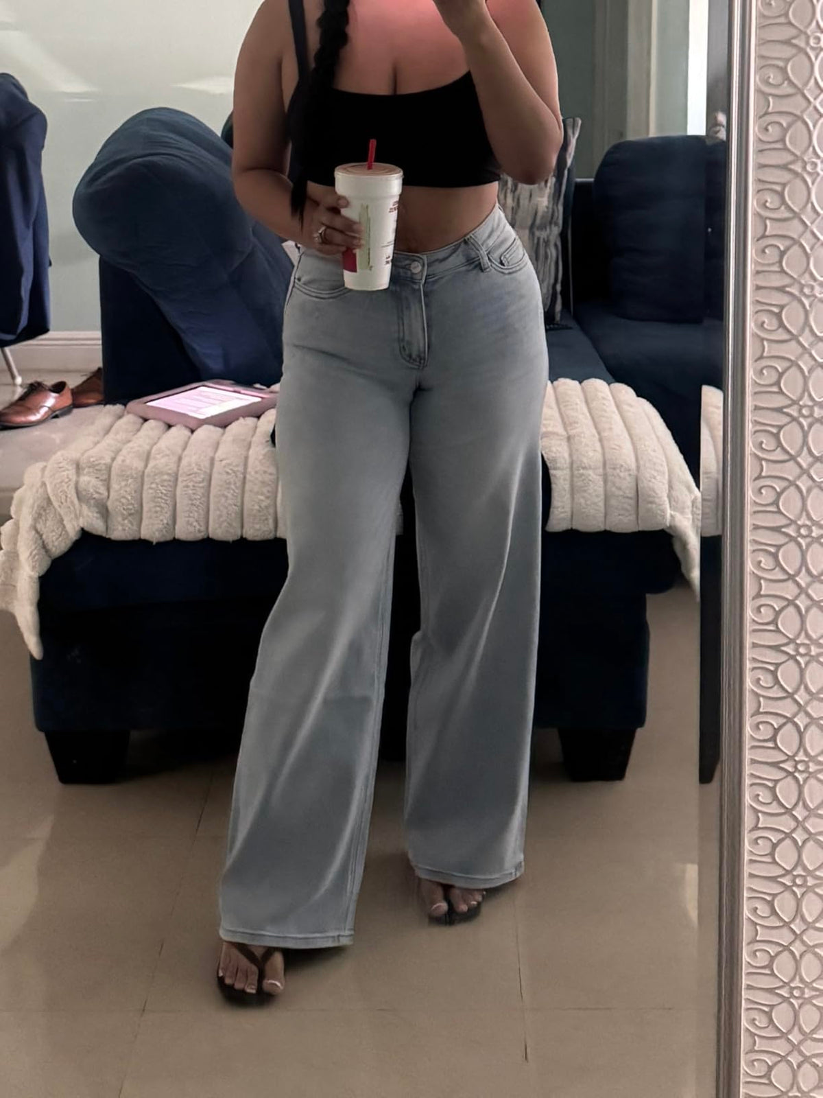 Upgrade your everyday style with these fashion-forward high-waisted wide-leg jeans, designed for comfort and a flattering silhouette.